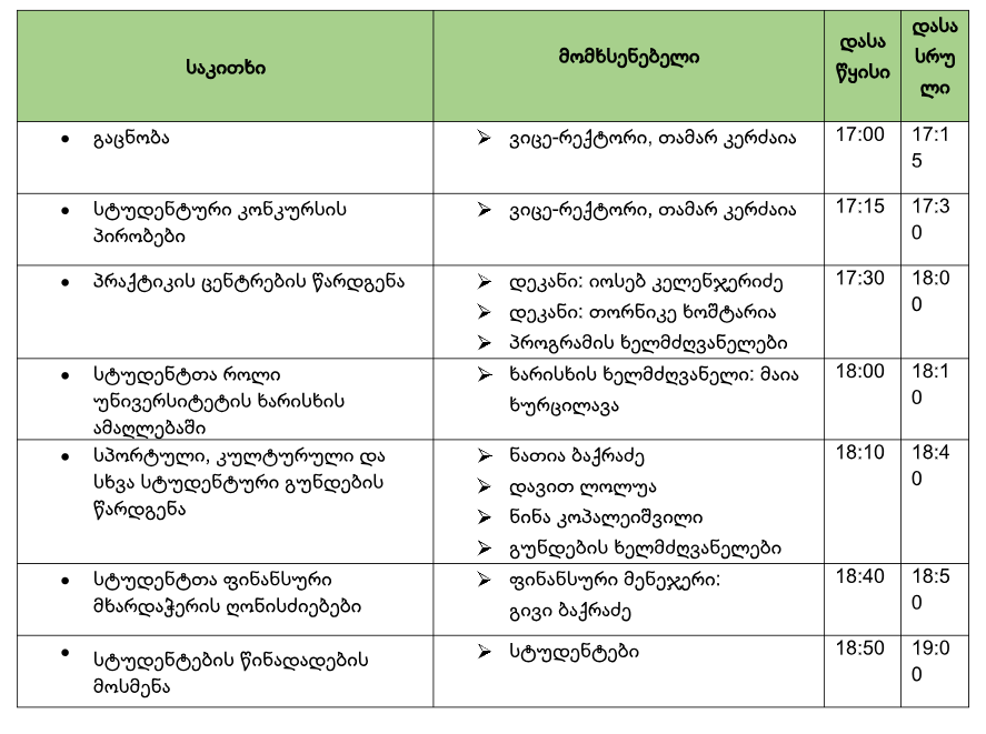 10 ოქტომბერს, ევროპის უნივერსიტეტის ვიცე-რექტორი და ადმინისტრაციის წევრები სტუდენტებს შეხვდებიან