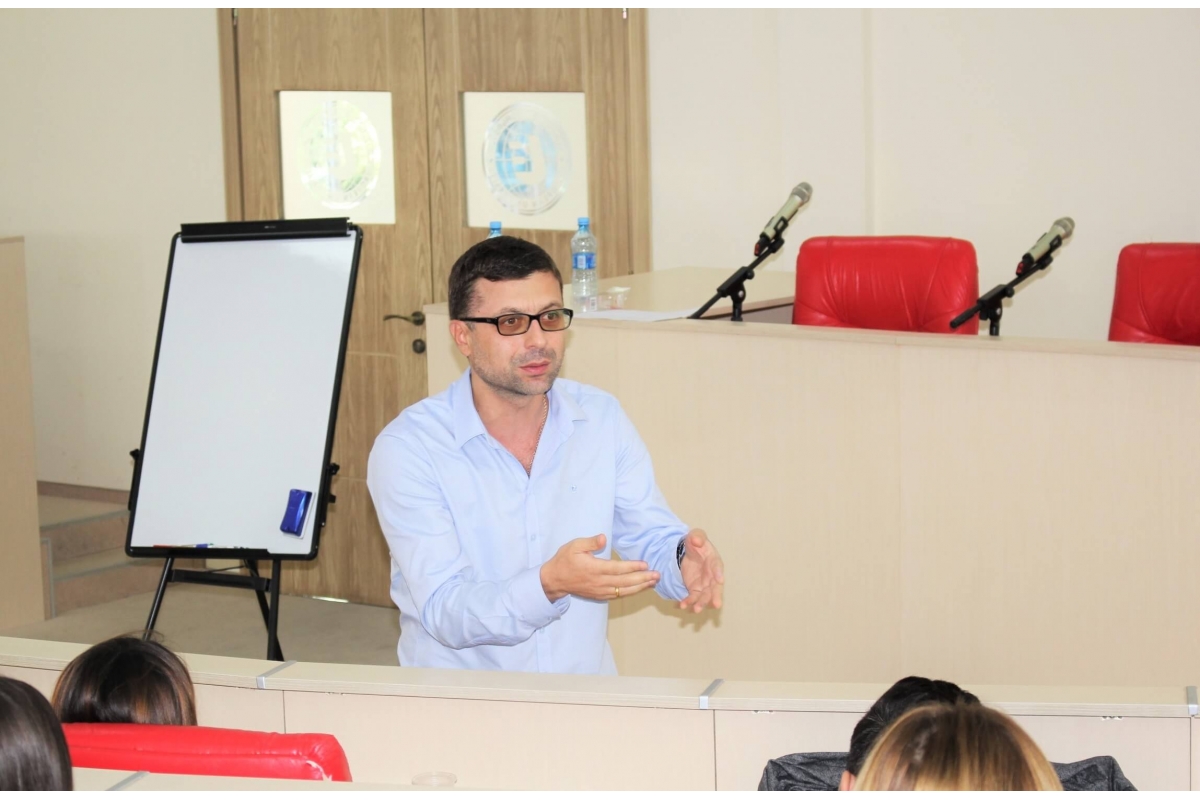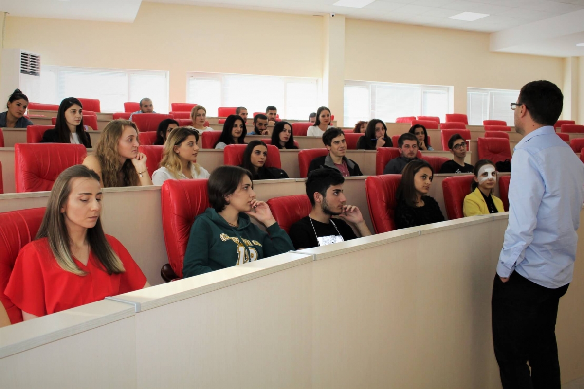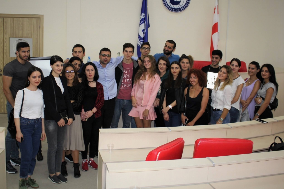 ევროპის უნივერსიტეტის სტუდენტები ადამიანების მენეჯმენტის ტრენერსა და ბიზნეს კონსულტანტს - დავით გოგიჩაიშვილს შეხვდნენ